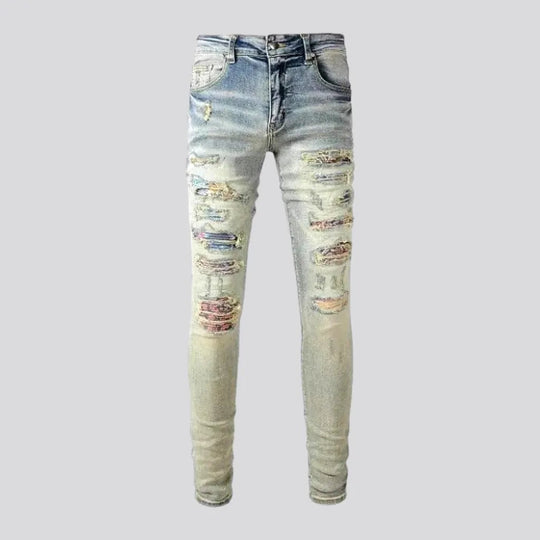 Skinny ripped boho style jeans for men