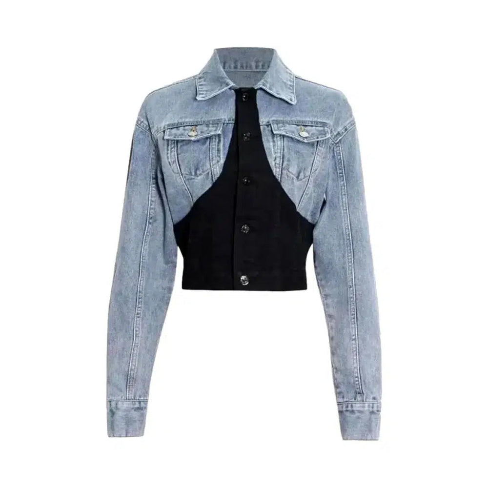• Mixed-Fabric Construction: The combination of different fabrics creates a unique and eye-catching look, making this jacket a must-have for any fashion-forward individual.