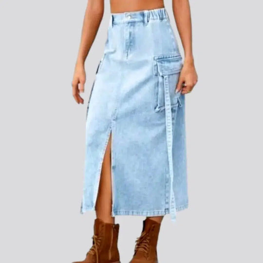 Long cargo denim skirt for ladies