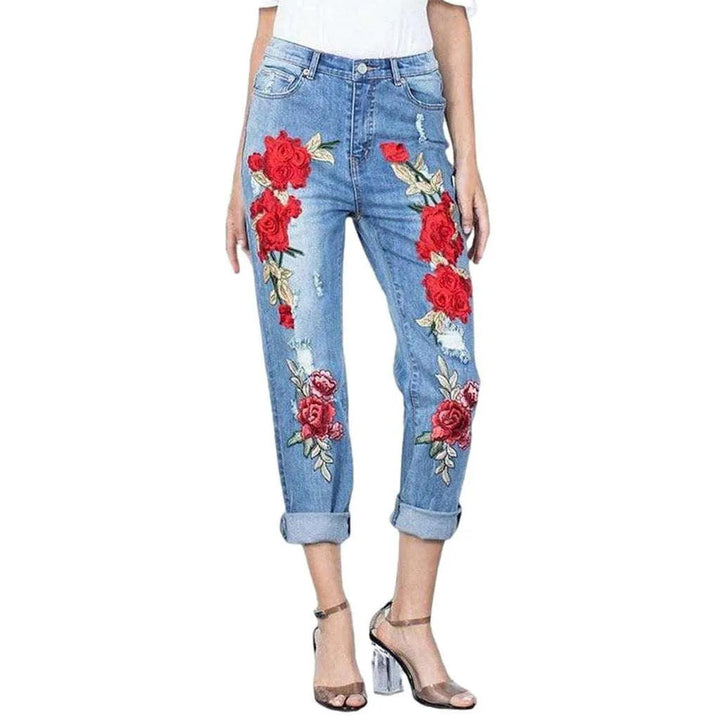 Embroidered loose jeans for women
